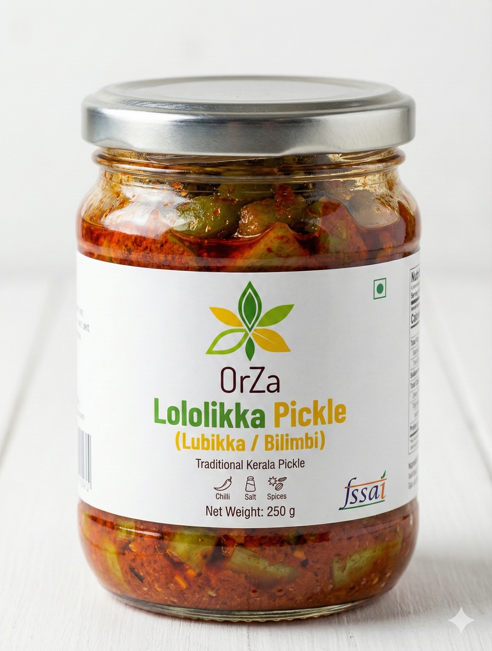 OrZa Lololikka Pickle (Lubikka / Bilimbi Pickle) is a traditional Kerala-style pickle made from fresh bilimbi fruit, blended with authentic spices and gingelly oil. Known for its tangy and spicy flavor, this pickle is a perfect accompaniment for rice, curd rice, dosa, and kanji.